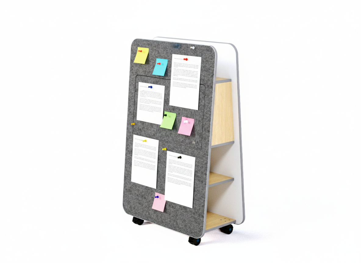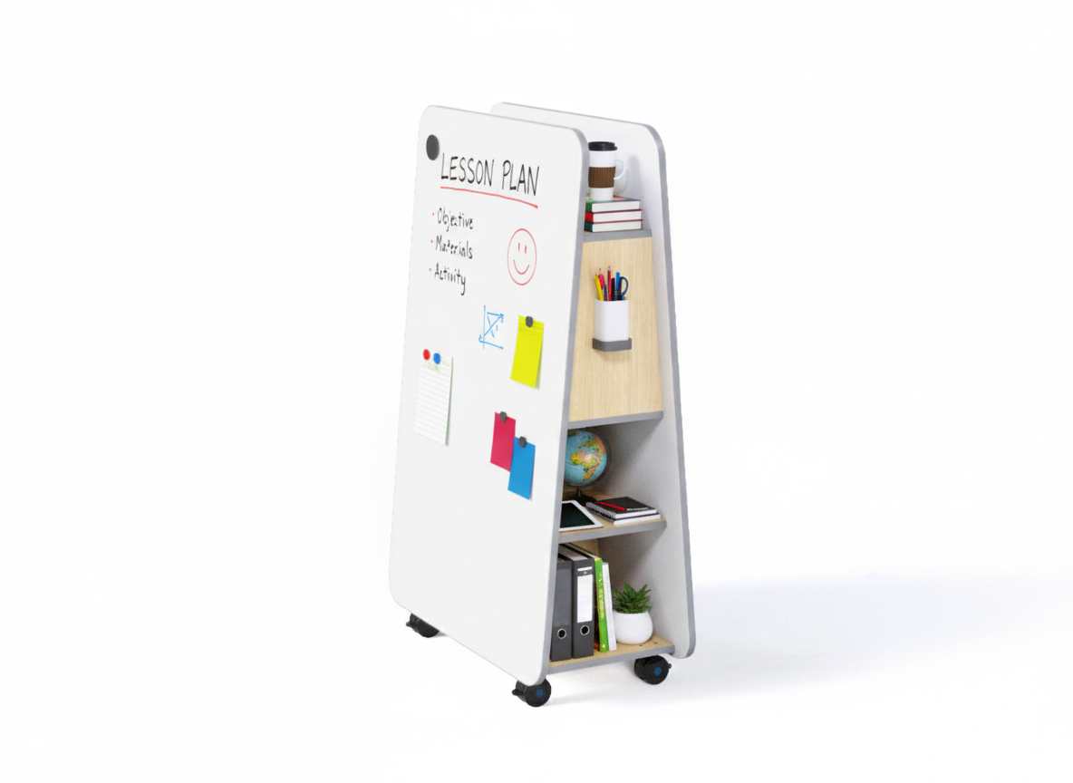 Built-in storage keeps markers, erasers, manipulatives, and supplies organized and within reach. Smooth-rolling casters provide effortless mobility, allowing anyone to reconfigure a classroom, office, or collaboration space. Ideal for educators, trainers, therapists, and creative professionals who need flexible, multi-functional workspace solutions.